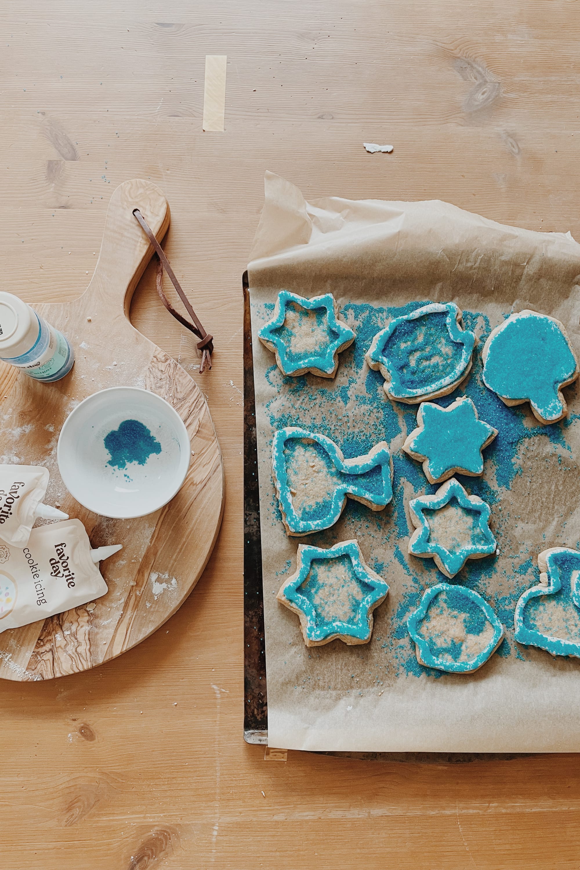 It has become a tradition of sorts. We bake sugar cookies and decorate them. It is a lovely way to celebrate Hanukkah and to bless other people like family, friends or neighbors. I will continue to do this as long as the kids are willing to join me βΊοΈ