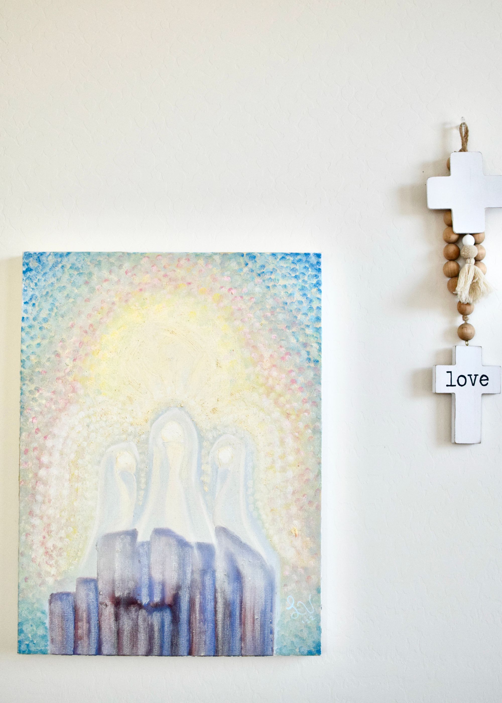 I was inspired to paint this scene of the Transfiguration of Christ. What an unbelievably beautiful sight it must have been to see our Master in His glorious light. Two men appeared next to Yeshua on the mountain to comfort Him and encourage Him just before His death on the cross.