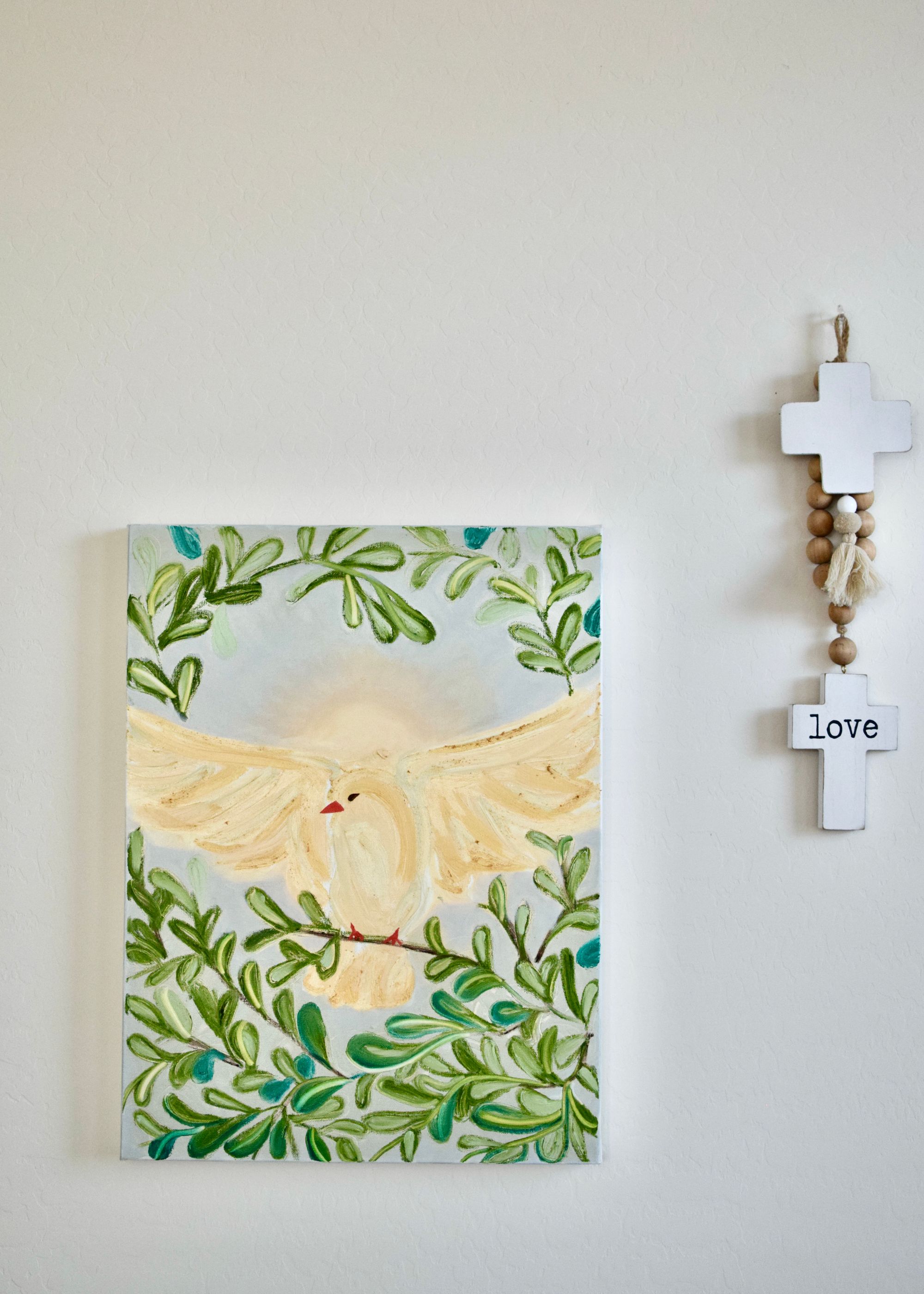I made this painting a while ago in 2020 but never posted it. It is a painting that inspires so much peace and inner beauty. This dove represents the Ruach Elohim (Spirit of God) or more commonly known as the Holy Spirit. It rests on an olive branch and symbolizes the Glory of the Lord. I love how it turned out and I think it would bring peace and beauty into any home.