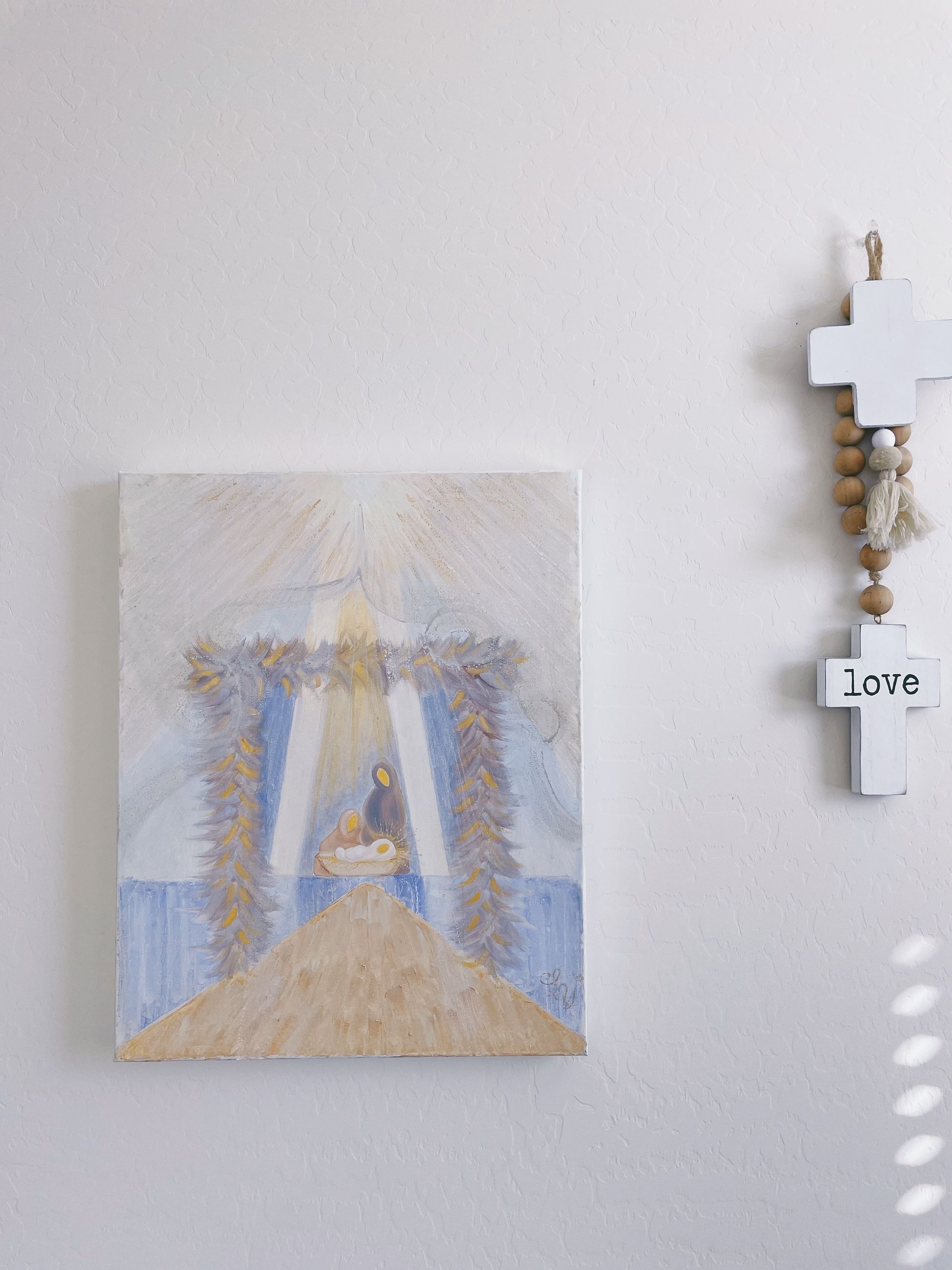 Whenever He was born...He was the light of world! Enjoy this depiction of baby Yeshua resting peacefully under the Sukkah (tabernacle).